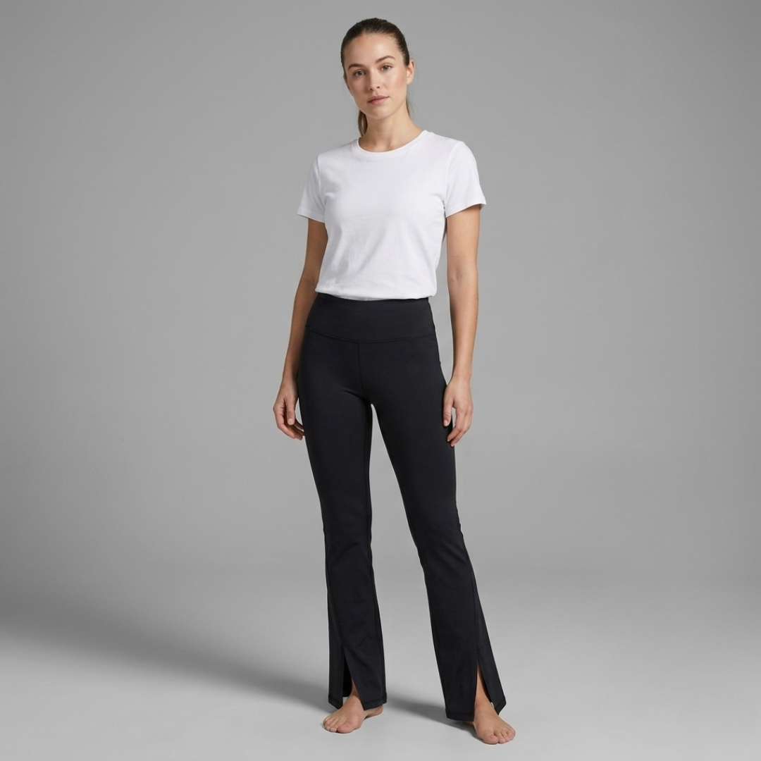 Silueta Estilizada: El tiro alto proporciona una sujeción cómoda en la zona abdominal, mientras que la apertura de la bota equilibra las proporciones de las piernas.